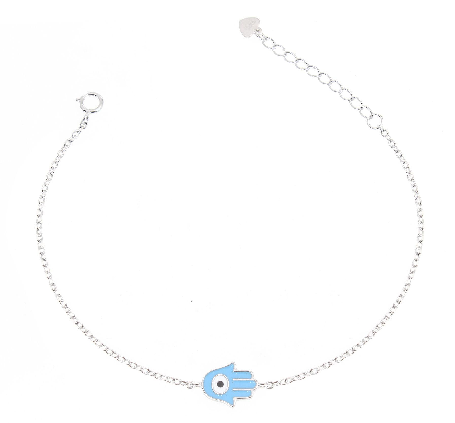 Sterling Silver Hamsa Evil Eye Bracelet - Light Blue