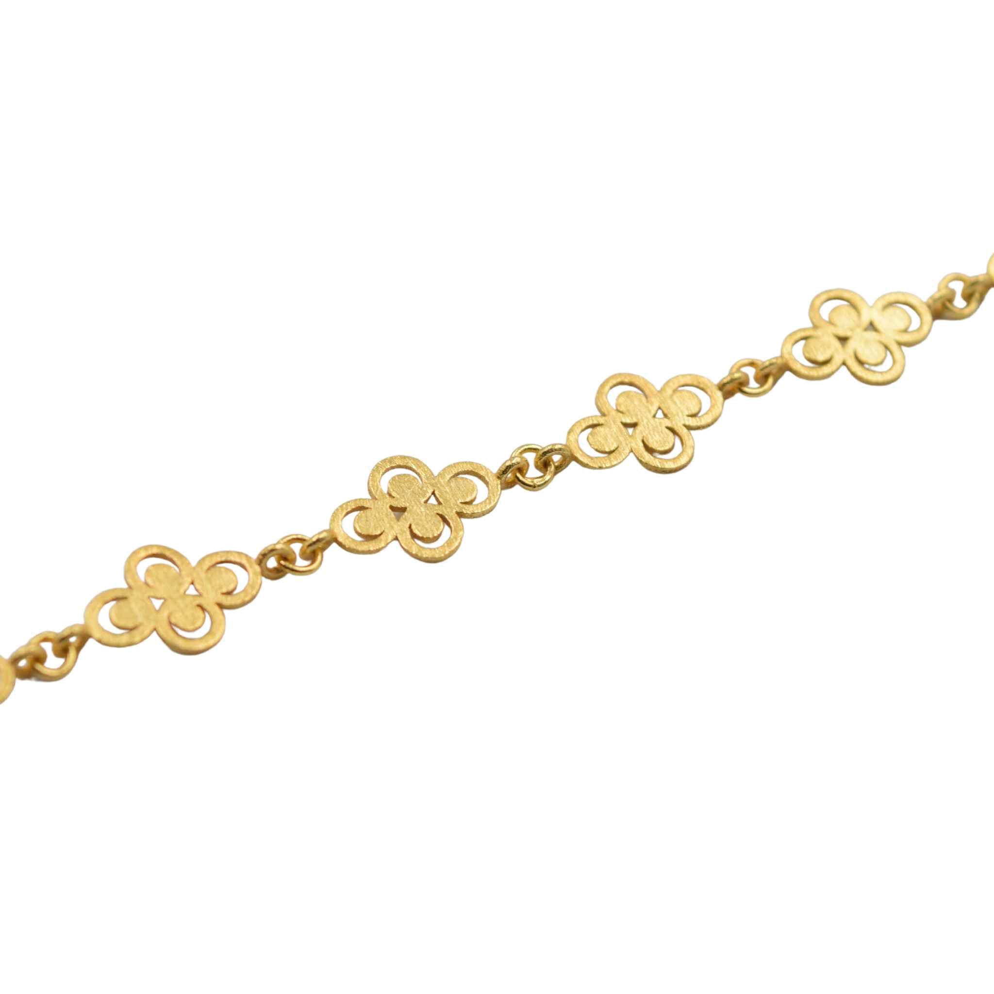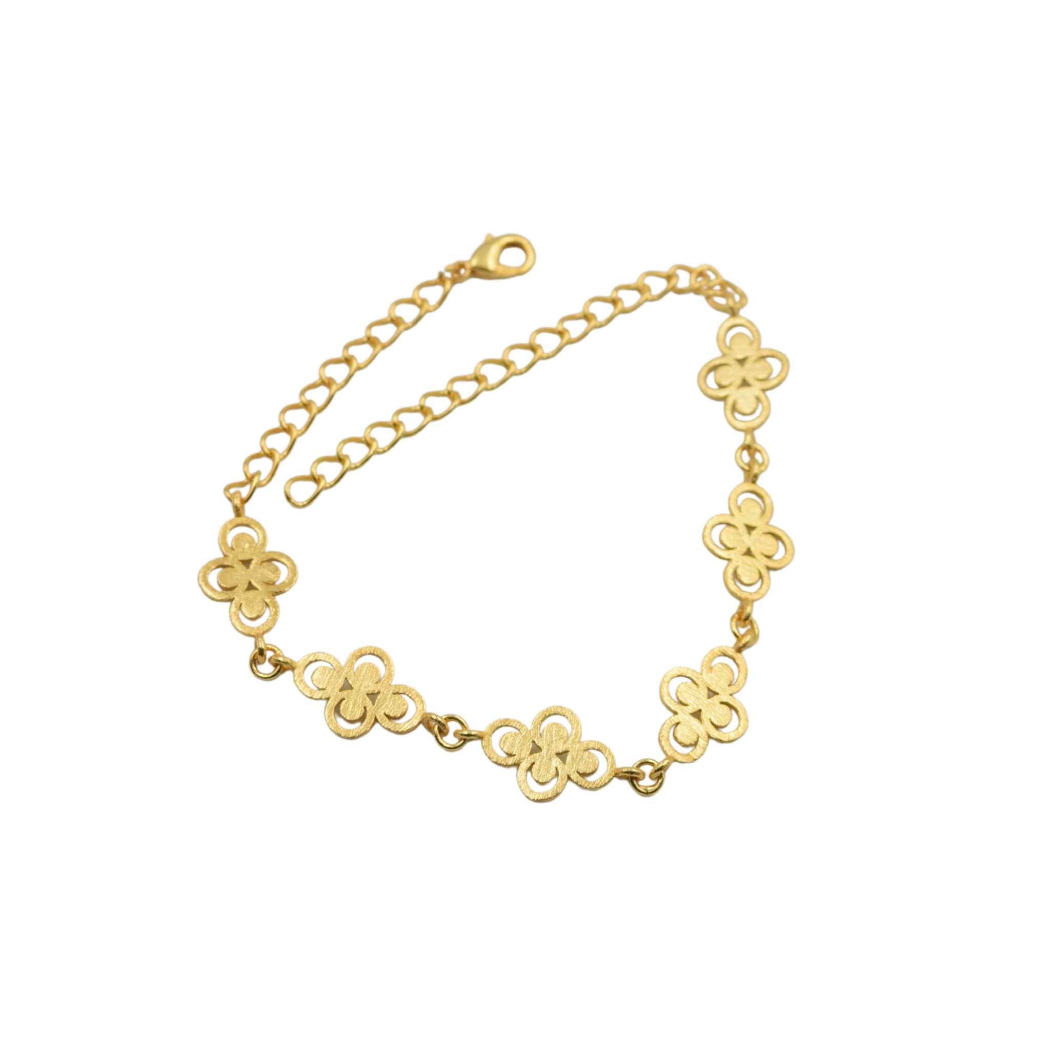 This Eternal Energy Bracelet offers sophistication and style. Crafted with 14kt gold plated brass, it features six small geometric charms and a gold chain, giving it a unique matt finish. Perfect for any special occasion or every day wear.