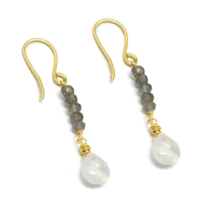 Kleo Drop Earrings with Labradorite and Rainbow Moonstone.