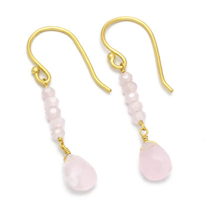 Kleo Droplet Earrings with Rose Quartz Gemstones.