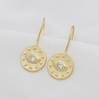 Sterling Silver 18ct Plated Semi-Precious Soraya Earrings with Cubic Zirconia evil eyes.
