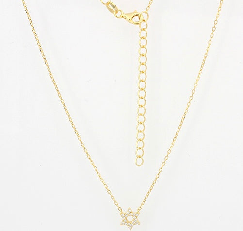 Necklace is 40cm with a 5cm extension chain, with a 11mm CZ Magen David charm.