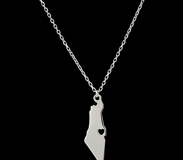 Necklace is 40cm, with a 5cm extension, and 9x30mm Israel with cut-out heart pendant.