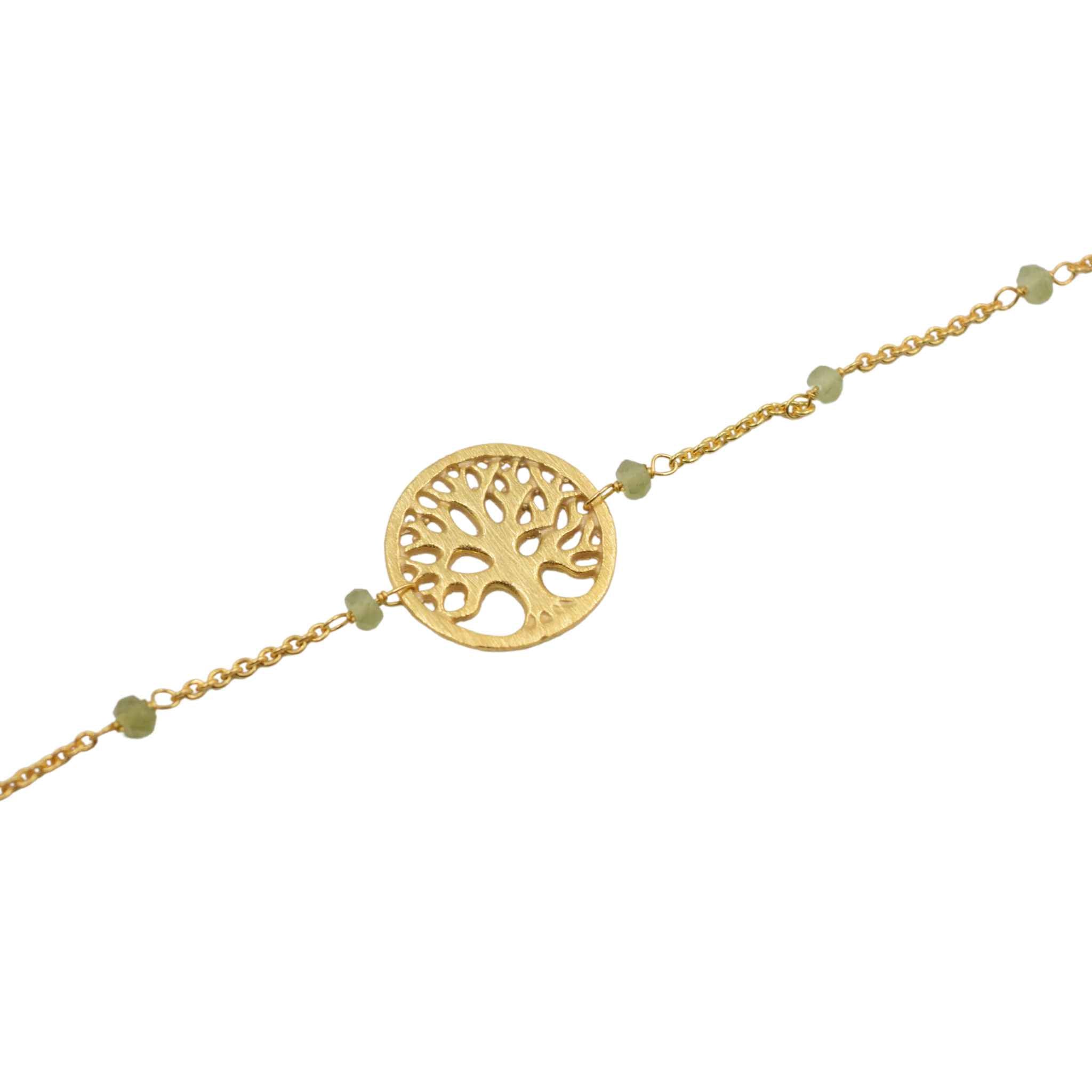 This 14kt gold-plated Tree of Life Mandala Bracelet is a timeless accessory, featuring a matt finish and intricate mandala design. With semi-precious stone beads and gold chain, its symbolic design conveys the power of life’s cyclical nature. Ideal for all occasions.