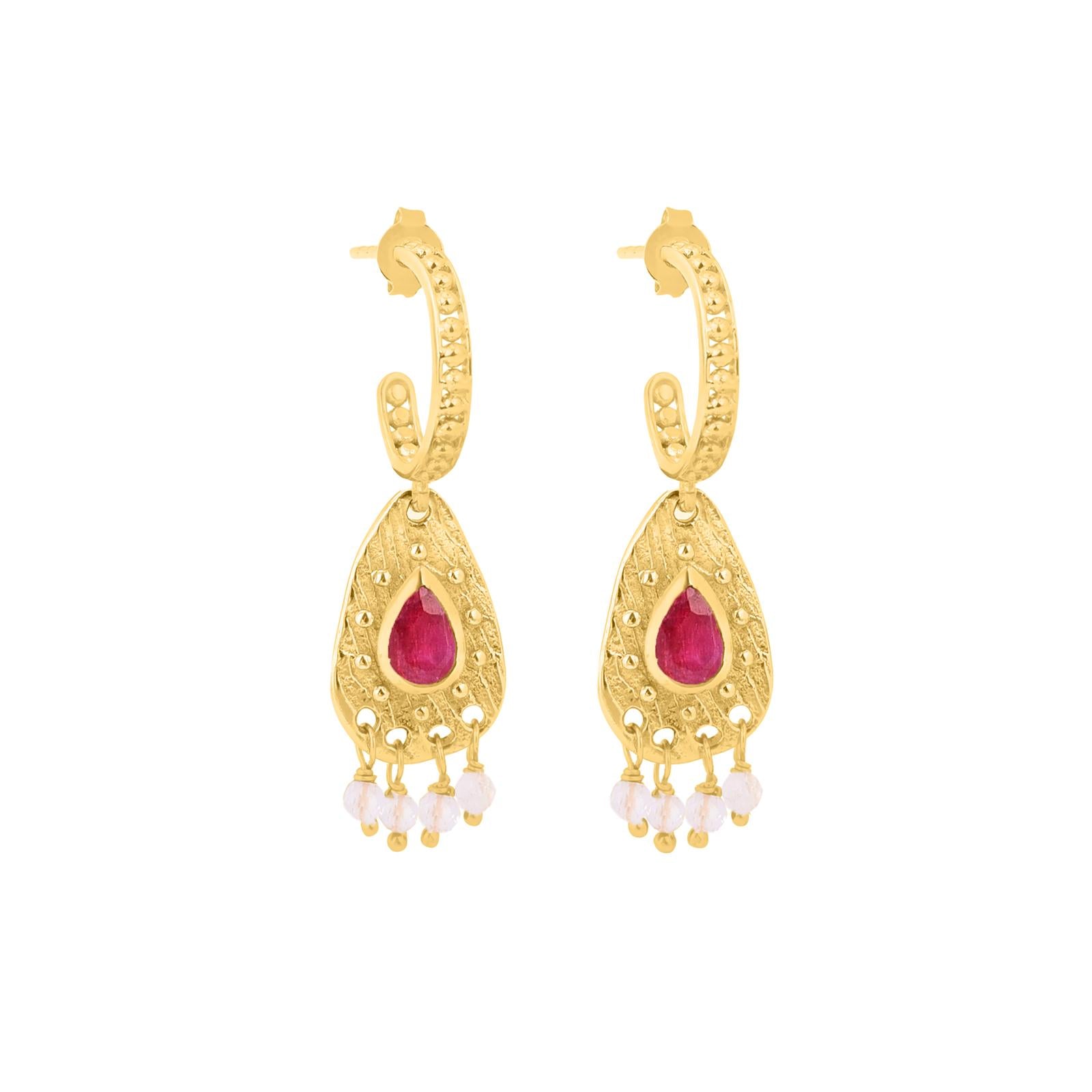 These stunning handmade earrings feature semi-precious moonstone and ruby and are the ultimate addition to any outfit.